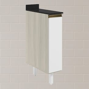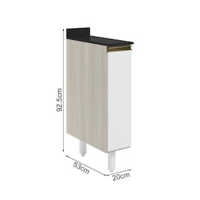 Balcão com tampo funcional e compacto para composições modernas. Com 20cm de largura, fabricado 100% em MDF, possui estrutura e tampo de 15mm, com forro de 3mm. Conta com 1 porta com dobradiças de 35mm com amortecedor, puxador em perfil alumínio e 1 prateleira interna. Os 2 pés possuem altura de 15,5cm com regulagem adicional de 1,5cm, garantindo estabilidade em qualquer piso. Este móvel chegará em sua casa separado em 3 volumes.