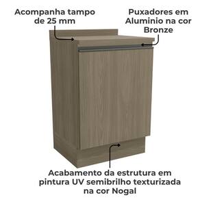 Projetado para oferecer estilo e praticidade. O Balcão com Tampo 60 cm G742 é produzido 100% em MDP 15 mm com acabamento em pintura UV texturizada (fosco ou semibrilho) e tampo 100% MDP 25 mm com acabamento em pintura BP. Conta com 1 porta equipada com dobradiça reta de 35 mm, puxador em alumínio e prateleira interna. Produto com duplo sistema de montagem, podendo ser instalado suspenso ou com rodapé. Este móvel chegará na sua casa separado em 02 volumes.