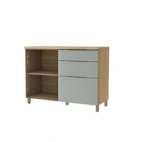 Características: Estrutura 100 MDF Puxadores de alumínio na cor porta Dobradiças slow motion com freio anti-impacto Tampo em 30mm Pés de 100mm de altura reguláveis com acabamento pintado Gavetas com corrediças telescópicas três estágios e abertura total Gavetão com laterais e traseiros a altos que suporta 30 kg com régua reforço no fundo Organizador de talheres