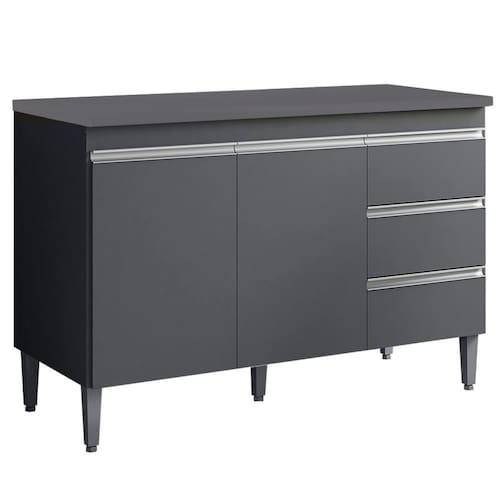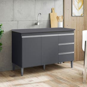 Balcão com Tampo 120 cm 2 Portas Andreia, é ideal para quem busca qualidade e sofisticação para compor sua cozinha da forma que desejar. Estrutura em MDP de 12 e 15 mm, acabamento com pintura UV. Composto por 2 portas articuladas com dobradiças metálicas, 3 gavetas com corrediças metálicas com deslize suave, espaço para colocação de pia (pia não inclusa), possui tampo resistente, prateleira interna para organizar seus utensílios, puxadores em alumínio, acompanha pés em PVC. Você pode adquirir outras peças dessa composição que são vendidas separadamente no nosso site. Produzido com controle de qualidade e com excelente acabamento. Estes móveis chegarão na sua casa separado em 2 volumes.