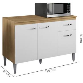 MDPBalcão Com Tampo Gabriela, funcional e compacto para o dia a dia. Estrutura em MDP (12/15 mm - fundo 3 mm) com acabamento em pintura UV. Possui porta e gaveta com dobradiças e corrediças metálicas, prateleira interna e puxadores e pés plásticos (pés com regulagem). Entregue em 2 volumes.