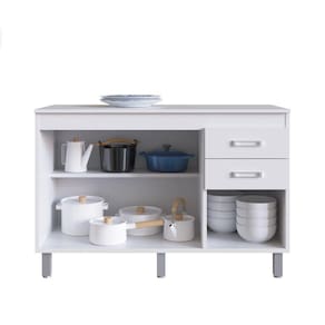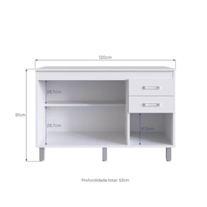 Balcão com tampo 120 flex branco, com três portas e duas gavetas e cinco pés, com opção de utilizar cuba. Ideal para complementar o ambiente da cozinha, trazendo praticidade e organização, em um modelo clássico. Suporta Granito: Sim Acabamento da Prateleira: Pintura UV Escala de Brilho da Prateleira: Semi-Brilho Acabamento da Gaveta: Pintura UV Escala de Brilho da Gaveta: Semi-Brilho Material do Puxador da Gaveta: Plástico Acabamento da Porta: Pintura UV Escala de Brilho da Porta: Semi-Brilho Material do Puxador da Porta: Plástico Produto Montado: Sim Acabamento: Pintura UV Acabamento dos Pés: Polipropileno Acompanha Tampo: Sim Altura dos Pés: 13 cm Ambiente Principal: Cozinha Balcão Acompanha Pia: Não Cesto para Frutas: Não codigo_ean: 7909903344569 Complexidade da Montagem: Baixa: pode ser montado por uma pessoa sozinha Cor: Branco Cor do Produto: Branco Cor Flex: Branco Cor Interna: Branco Escala de Brilho: Semi-Brilho Espessura do Material da Estrutura: 12 mm Gaveta com Chave: Não Itens Inclusos: 1 Balcão, Manual de Montagem e Kit Ferragens Manual de Montagem e Instalação: https://product-hub-prd.madeiramadeira.com.br/856486/documents/33258f04-0d1c-4902-9110-7121e220074d1373570balcao1200flexqq.pdf Material da Dobradiça/Corrediça da Porta: Alumínio Material da Gaveta: MDP Material da Porta: MDP Material da Prateleira: MDP Material do Tampo: MDP Material dos Pés: Polipropileno Medida do Tampo (L x C x E): 120x53x1,5cm modular: Não Montagem Flex: Não Necessita Montagem: Sim O Balcão Acompanha Pia: Não Origem do Produto: Nacional Pés Reguláveis: Sim Peso: 34 kg Peso Máximo por Gaveta: 5 kg Peso Máximo por Prateleira: 7 kg Possui Pés: 05 Possui Portas: Sim Possui recorte para Cooktop: Não Recomendações de Uso, Manutenção e Limpeza: Usar pano seco e macio para limpeza de superfícies. Sapatas Niveladoras: Sim Sistema de Montagem: Parafusos, cavilhas Suporta Até (kg): 20 kg Tipo de Corrediça da Gaveta: Simples Tipo de Dobradiça/Corrediça da Porta: Simples Tipo de Porta: Bater Tipo de Puxador da Gaveta: Externo Tipo de Puxador da Porta: Externo