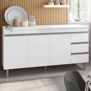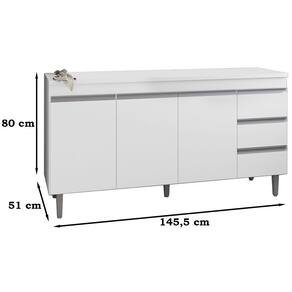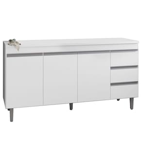 Balcão com Tampo 150 cm 3 Portas Andreia, é ideal para quem busca qualidade e sofisticação para compor sua cozinha da forma que desejar. Estrutura em MDP de 12 e 15 mm, acabamento com pintura UV. Composto por 3 portas articuladas com dobradiças metálicas, 3 gavetas com corrediças metálicas com deslize suave, espaço para colocação de pia (pia não inclusa), possui tampo resistente, prateleira interna para organizar seus utensílios, puxadores em alumínio, acompanha pés em PVC. Você pode adquirir outras peças dessa composição que são vendidas separadamente no nosso site. Produzido com controle de qualidade e com excelente acabamento. Estes móveis chegarão na sua casa separado em 2 volumes.