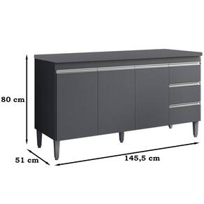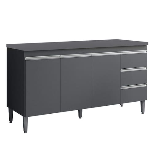 Balcão com Tampo 150 cm 3 Portas Andreia, é ideal para quem busca qualidade e sofisticação para compor sua cozinha da forma que desejar. Estrutura em MDP de 12 e 15 mm, acabamento com pintura UV. Composto por 3 portas articuladas com dobradiças metálicas, 3 gavetas com corrediças metálicas com deslize suave, espaço para colocação de pia (pia não inclusa), possui tampo resistente, prateleira interna para organizar seus utensílios, puxadores em alumínio, acompanha pés em PVC. Você pode adquirir outras peças dessa composição que são vendidas separadamente no nosso site. Produzido com controle de qualidade e com excelente acabamento. Estes móveis chegarão na sua casa separado em 2 volumes.