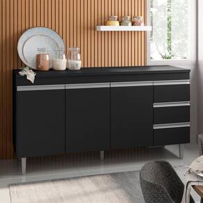 Balcão com Tampo 150 cm 3 Portas Andreia, é ideal para quem busca qualidade e sofisticação para compor sua cozinha da forma que desejar. Estrutura em MDP de 12 e 15 mm, acabamento com pintura UV. Composto por 3 portas articuladas com dobradiças metálicas, 3 gavetas com corrediças metálicas com deslize suave, espaço para colocação de pia (pia não inclusa), possui tampo resistente, prateleira interna para organizar seus utensílios, puxadores em alumínio, acompanha pés em PVC. Você pode adquirir outras peças dessa composição que são vendidas separadamente no nosso site. Produzido com controle de qualidade e com excelente acabamento. Estes móveis chegarão na sua casa separado em 2 volumes.