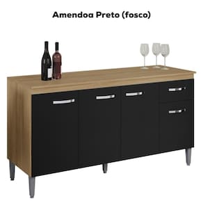 Balcão Com Tampo Gabriela, funcional e compacto para o dia a dia. Estrutura em MDP (12/15 mm - fundo 3 mm) com acabamento em pintura UV. Possui portas e gavetas com dobradiças e corrediças metálicas, ampla prateleira interna com divisão e puxadores e pés plásticos (pés com regulagem). Entregue em 2 volumes.