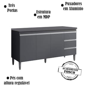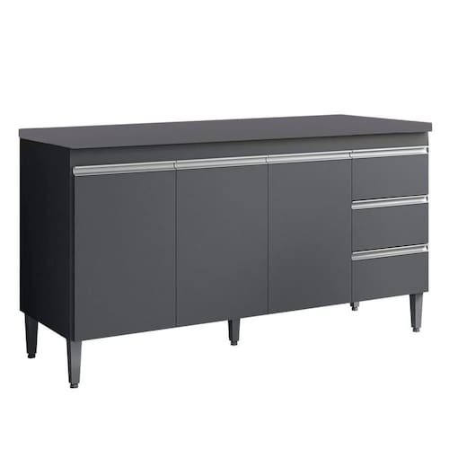 Balcão com Tampo 160 cm 3 Portas Andreia, é ideal para quem busca qualidade e sofisticação para compor sua cozinha da forma que desejar. Estrutura em MDP de 12 e 15 mm, acabamento com pintura UV. Composto por 3 portas articuladas com dobradiças metálicas, 3 gavetas com corrediças metálicas com deslize suave, espaço para colocação de pia (pia não inclusa), possui tampo resistente, prateleira interna para organizar seus utensílios, puxadores em alumínio, acompanha pés em PVC. Você pode adquirir outras peças dessa composição que são vendidas separadamente no nosso site. Produzido com controle de qualidade e com excelente acabamento. Estes móveis chegarão na sua casa separado em 2 volumes.
