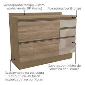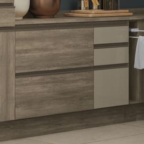 Design versátil que une beleza, resistência e praticidade em um único móvel. O Balcão com tampo G747, é fabricado 100% em MDP com espessura de 15mm, acabamento em pintura texturizada UV (semibrilho). Conta com 1 porta basculante equipada com dobradiça reta de 35mm com amortecedor e pistão a gás, 4 gavetas (sendo 2 gavetões e 3 em vidro de 3mm) com corrediças telescópicas e puxadores em alumínio. Possui sistema de montagem flex, podendo ser instalado suspenso ou com rodapé adaptando-se ao seu projeto e à sua necessidade. Acompanha tampo fabricado em MDP de 25mm com sarrafo de reforço e acabamento em pintura texturizada BP(semibrilho). Este móvel chegará na sua casa separado em 02 volumes.