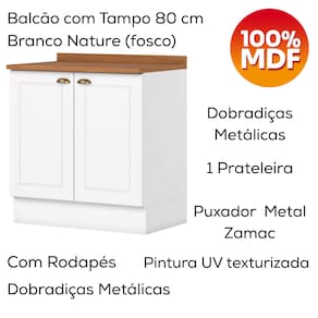Balcão Com Tampo 2 Portas 80 cm, cozinha provençal seu conceito é inspirado nas clássicas cozinhas estilo americano. Estrutura 100% MDF de 15mm (fundo em MDF de 3mm), possui rodapés com opção de instalação sem rodapés suspensa (ferragens para fixação na parede inclusas). 2 Portas com dobradiças metálicas, frentes com usinagem em baixo relevo. A pintura UV texturizada proporciona um acabamento sofisticado e fácil de limpar, com tampo de 800 x 535. Este móvel chegará na sua casa separado em 02 volumes.