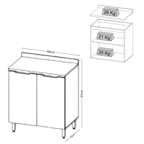 Características: 2 Portas 1 Prateleira interna Acompanha tampo Dobradiças metálicas com amortecimento Estrutura em MDP revestido em FF Pés reguláveis Puxadores em alumínio Prateleira suporta até 21kg
