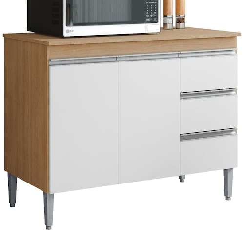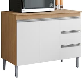 Balcão Reajl com Tampo, compacto e funcional, trazendo praticidade para seu dia a dia. Estrutura em MDP (12/15 mm - fundo 3 mm). Composto por portas e gavetas com dobradiças e corrediças metálicas, 1 prateleira interna e puxadores em alumínio. Pés em plástico com regulagem, garantindo estabilidade em qualquer piso. Produto será entregue em 02 volumes.