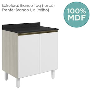 Balcao Com Tampo 2P 60 cm MDF Kali 12220 Bianco Toq Branco Uv Nicioli