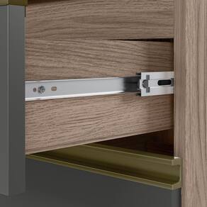 Balcão com tampo funcional e compacto para composições modernas. Com 40cm de largura, fabricado 100% em MDF, possui estrutura e tampo de 15mm, com forro de 3mm. Conta com 4 gavetas com corrediças telescópicas e puxadores em perfil alumínio. Os 4 pés possuem altura de 15,5cm com regulagem adicional de 1,5cm, garantindo estabilidade em qualquer piso. Este móvel chegará em sua casa separado em 3 volumes.