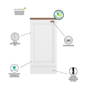 Balcão Com Tampo 41 Cm 1 Porta Unna Poliman Móveis Branco O Balcao 1 Porta com Tampo Unna da Poliman Moveis e um produto elegante e funcional. Possui 1 porta de bater com dobradicas reforcadas de 35mm e prateleira interna, com tampo de 27mm de espessura, puxador modelo retro em polimero com acabamento em alta cobertura para deixar seu movel ainda mais elegante, contem pes em PVC regulaveis ao piso de 14,5 cm que permitem o nivelamento perfeito, tambem acompanha rodapes removiveis com presilhas modelo click que facilita na hora de fazer a limpeza. Estrutura em MDP Perffect Touch de maior resistencia e com protecao Bacterban que inibe a proliferacao de fungos e bacterias na superficie do movel, as portas sao almofadadas/molduradas em MDF inspiradas nas classicas cozinhas . Produto ecologicamente correto com embalagens preparadas para evitar e permitir que o produto chegue em perfeito estado em sua casa. Perfeita combinacao com os mais variados ambientes. Qualidade que so a Poliman oferece em seus produtos. Caracteristicas: Porta de bater almofadada/moldurada em MDF 4mm, acompanha tampo de 27mm de espessura, dobradicas de 35mm, prateleira interna, puxador retro em polimero metalizado, pes regulaveis, rodapes removiveis com presilhas modelo click.