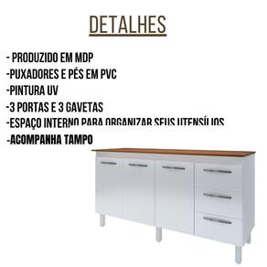 O Balcão Com Tampo Diana é a combinação perfeita de estilo e funcionalidade para sua cozinha. Com um design moderno e elegante, oferece espaço generoso para organizar seus utensílios de cozinha, contando com materiais de qualidade. Adquira agora e transforme sua cozinha em um ambiente sofisticado e prático.