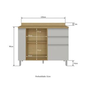 Balcão 120 da GraLar, um acessório/complemento da sua cozinha, mostrando utilidade, modernidade e beleza com qualidade superior. A linha Paris é modulada e você pode compor o ambiente com sua necessidade, otimizando espaços e organizando sua cozinha. Acabamento em impressão texturizada touch fosco UV, confeccionado em MDF 15mm, possui corrediças telescópicas e puxadores de alumínio embutido. Suporta Granito: Sim Acabamento da Prateleira: Pintura UV Escala de Brilho da Prateleira: Semi-Brilho Acabamento da Gaveta: Pintura UV Escala de Brilho da Gaveta: Semi-Brilho Material do Puxador da Gaveta: Alumínio Acabamento da Porta: Pintura Escala de Brilho da Porta: Semi-Brilho Material do Puxador da Porta: Alumínio Acabamento: Pintura UV Acompanha Tampo: Não Altura dos Pés: 14 cm Ambiente Principal: Cozinha Balcão Acompanha Pia: Não codigo_ean: 7908388160749 Complexidade da Montagem: Baixa: pode ser montado por uma pessoa sozinha Cor: LOURO FREIJO/OFF WHITE Cor do Produto: Louro Freijo/off White Cor Interna: louro Freijo Escala de Brilho: Semi-Brilho Gaveta com Chave: Não Itens Inclusos: 1 Balcão e Manual de Montagem Linha ou Coleção: Paris - Casamia Manual de Montagem e Instalação: https://product-hub-prd.madeiramadeira.com.br/625705/documents/d88e5ee8-97a2-496c-8498-e7dfe75ea43f850c2061972778994671311595.pdf Material da Dobradiça/Corrediça da Porta: Metálica Material da Gaveta: MDF Material da Porta: MDF Material da Prateleira: MDF Material dos Pés: ABS modular: Sim Necessita Montagem: Sim O Balcão Acompanha Pia: Não Origem do Produto: Nacional Pés Reguláveis: Não Peso: 61 kg Peso Máximo por Gaveta: 5 kg Peso Máximo por Prateleira: 5 kg Possui Pés: 05 Possui Portas: Sim Possui recorte para Cooktop: Não Recomendações de Uso, Manutenção e Limpeza: Deve ser feita com pano macio e seco ou levemente umedecido com água e sabão neutro. Não devem ser utilizados abrasivos como palha de aço e objetos cortantes. Sapatas Niveladoras: Não Sistema de Montagem: Parafusos,cavilhas e minifix. Suporta Até (kg): 30 kg Tipo de Corrediça da Gaveta: Telescópica Tipo de Dobradiça/Corrediça da Porta: Soft close Tipo de Porta: Bater Tipo de Puxador da Gaveta: Embutido Tipo de Puxador da Porta: Embutido