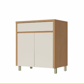 Inspirada em cozinhas planejadas, a linha oferece modulos independentes, permitindo composicoes exclusivas conforme o seu espaco e estilo. As portas na cor Greige, a cor do momento, e o corpo em carvalho linheiro trazem requinte e sofisticacao ao ambiente.