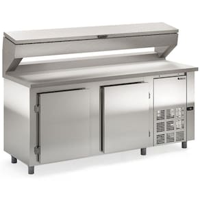 Balcão Condimentado 2 Portas e 11 Gns 1/4 com Tampa GBPZ200CBTAI Gelopar. Ideal para pizzarias, hotéis, restaurantes, clubes, bares, lanchonetes. Conservador e Expositor de frios, laticínios, bebidas e condimentos para preparo de pizzas e alimentos diversos (não congelados). Temperatura: 0 a +7C. Balcão refrigerado ar forçado com evaporador aletado. No compartimento superior para cubas: Evaporador tipo serpentina em Tubo de Cobre. Controlador eletrônico com indicador de temperatura. Degelo automático (frost free). Portas cegas em aço inox 304. Tampa injetada cega basculante em aço inox 430 (não requer utilização de tampas para cubas). Resistência no quadro de portas. Revestimento interno em aço galvanizado. Revestimento externo do tampo: Aço inox 304 escovado. Revestimento externo do gabinete: Aço inox 430. Pés niveladores. Lado de instalação do motor: Direito, para quem está de frente para as portas (padrão). Acompanha cubas e tampa. CAPACIDADE DE CUBAS: 11 Cubas GN 1/4. CONSUMO: 6,21 Wh/dia. TEMPERATURA: 0° a +7°C. PESO: 121 Kg. DIMENSÕES DAS CUBAS (CxAxL): 26,5x16,2x10cm. DIMENSÕES EXTERNAS (PxAxF): 70x128,5/90x200cm. Equipamento certificado conforme Portaria Inmetro nº 371/2009. Balcão Condimentado 2 Portas e 11 Gns 1/4 com Tampa GBPZ200CBTAI Gelopar é na Atau.