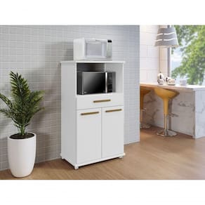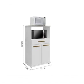 Balcão Conquista Arte Móveis Branco Este balcão é perfeito para diversos ambientes e funcionalidades. Utilize para organizar sua cozinha com praticidade, versatilidade e beleza. Possui espaço para Microondas e Forno Elétrico, 2 portas com dobradiças metálicas, ampla gaveta, prateleira interna e rodízios para facilitar a locomoção, tudo isso para garantir mais facilidade no seu dia a dia. Este balcão foi desenvolvido para combinar com qualquer decoração, deixando o seu ambiente mais bonito e funcional. MEDIDAS DO PRODUTO: Altura: 128 cm Largura: 73 cm Profundidade: 45 cm