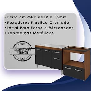 Balcão para Pia Anitta e Cooktop 4 Bocas Elisa, é ideal para quem busca qualidade e sofisticação para compor sua cozinha da forma que desejar. Estrutura em MDP de 12 e 15 mm, acabamento em pintura UV. Kit com 01 balcão para pia de 120cm de 3 portas e 2 gavetas e 01 balcão para Cooktop (56x36 cm tampo já recortado), com 02 portas articuladas, dobradiças metálicas e 01 nicho para microondas ou forno elétrico, puxadores em plástico cromado, espaço para utensílios, acompanham pés fixos que garantem a firmeza que o móvel precisa. Produzido com controle de qualidade e com excelente acabamento. Este móvel chegará em sua casa separado em 02 volumes.