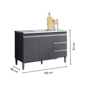 Balcão Cozinha Andréia Pia 120 cm Com Pés 2 Portas 3 Gavetas Cz - AJL Móveis