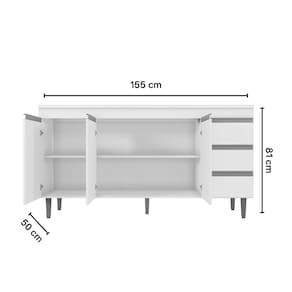 Balcão Cozinha Andréia Pia 160 cm Com Pés 3 Portas 3 Gavetas Branco - AJL Móveis