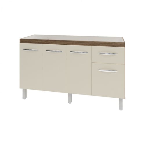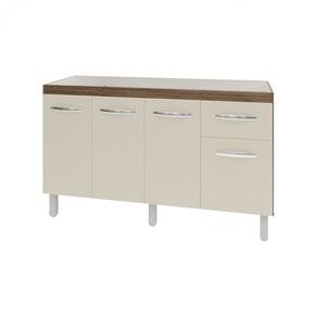 Altura com pés: 83,5 cm Altura sem pés: 67 cm Largura: 138 cm (Padrão para pia de 140 cm) Profundidade: 50 cm Material: MDP (Madeira de Média Densidade) Portas: 4 portas Gavetas: 1 gaveta Prateleiras: 1 prateleira Puxadores: 6 puxadores plásticos cromados Pés: 6 pés reguláveis de plástico Altura dos pés: 16,5 cm Regulagem dos pés: Ajuste máximo até 18 cm, apenas para nivelamento Corrediças: Metálicas Indicação de uso: Cozinha Nota: A imagem é meramente ilustrativa. O produto não acompanha tampo, pia ou objetos decorativos. Apenas o balcão está incluído.
