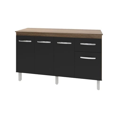 Balcão Cozinha Armário Gabinete Camila Savana Preto Com Tampo Tampão 140 Cm Mobília Decor Savana