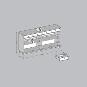 ESPECIFICAÇÕES TÉCNICAS:<Br> Matéria prima madeira maciça de pinus de reflorestamento;<Br> Pintura Acetinada Verniz PU e UV;<Br> Corrediças telescópicas;<Br> Peso máximo suportado pela Gaveta 05kg distribuídos;<Br> Puxadores metálicos em ouro envelhecido;<Br> Pés tornecados em madeira maciça;<Br> Prateleiras em madeira maciça (Peso suportado 10kg distribuídos)<Br> Isolamento de peças com manta de polietileno expandido (Isomanta);<Br> Possui manual de montagem;<Br> Sistema de montagem simples e rápida.<Br><Br>