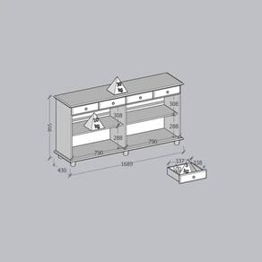 ESPECIFICAÇÕES TÉCNICAS:<Br> Matéria prima madeira maciça de pinus de reflorestamento;<Br> Pintura Acetinada Verniz PU e UV;<Br> Corrediças telescópicas;<Br> Peso máximo suportado pela Gaveta 05kg distribuídos;<Br> Puxadores metálicos em ouro envelhecido;<Br> Pés tornecados em madeira maciça;<Br> Prateleiras em madeira maciça (Peso suportado 10kg distribuídos)<Br> Isolamento de peças com manta de polietileno expandido (Isomanta);<Br> Possui manual de montagem;<Br> Sistema de montagem simples e rápida.<Br><Br>