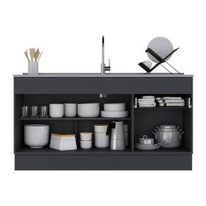 Balcão Cozinha c/ Rodapé Gabinete Pia 150cm 3 Ptas 1 Gav Veneza Multimóveis MP2115.898 Preto/Branco