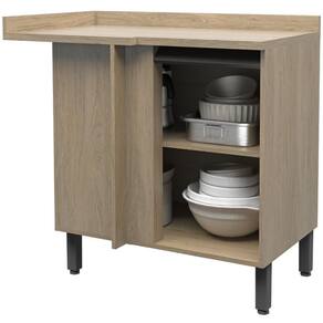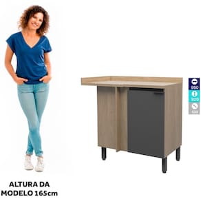 O Balcão de canto Hibisco é a opção perfeita para quem precisa de total aproveitamento do espaço disponível. Além do visual atraente, com os puxadores slim de alumínio, o módulo possui dobradiças slow motion com caneco de 35mm, que proporcionam abertura e fechamento das portas com maior absorção de impacto. que permite otimizar o espaço para acomodar mantimentos e utensílios de maneira ideal.