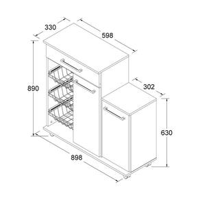 Cestos/Fruteiras em aramado. Puxadores cromados produzidos em polímeros, posui também rodizíos.