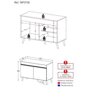 Altura: 84cm | Largura: 120cm | Profundidade: 53cm (balcão com tampo)