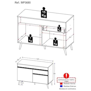 Dimensões do produto montado: Altura: 84cm | Largura: 120cm | Profundidade: 53cm (balcão com tampo) *Você pode consultar as medidas internas na imagem técnica do produto. *As cores do produto podem sofrer variações de tonalidade de acordo com as configurações do seu dispositivo.