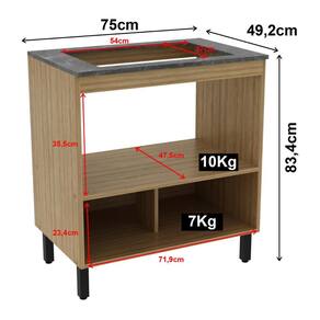 Dimensões do Produto Montado: Altura: 83,4cm | Largura: 75cm | Profundidade: 49,2cm *Medidas do Recorte para Cooktop: 54 x 37cm. *Medidas do Nicho para Forno (L x A x P): 71,9 x 35,5 x 47,5cm *Você pode consultar as medidas detalhadas na imagem técnica do produto.