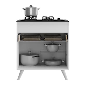 O Balcão Cozinha para Cooktop 70 cm 1 Porta 1 Gaveta Veneza Multimóveis tem um excelente custo benefício e um amplo espaço interno. Produzido em MDP com acabamento acetinado (cerca de 20% de brilho), que garante maior durabilidade e resistência, possui corrediças metálicas (mais leveza no manuseio), pés retrô em polipropileno, que deixam o ambiente mais estiloso, puxadores em ABS e tampo em MDP 15mm com pintura de alta resistência. O balcão possui tampo removível e pode ser utilizado com cooktop.