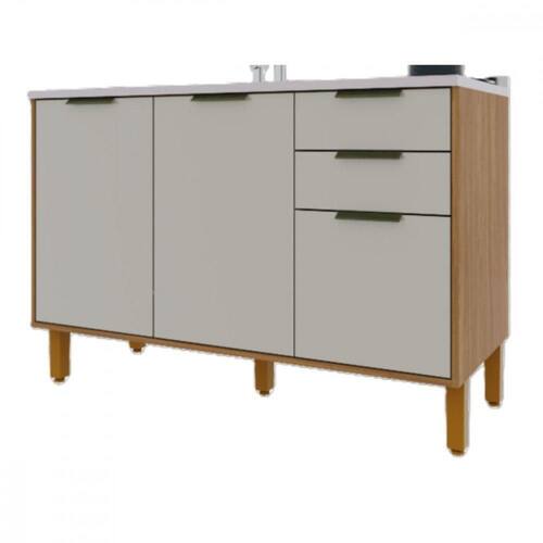 Balcão Cozinha Para Pia 3 Portas 2 Gavetas 1,20cm Paris Inde Freijo/off White Cozinha com modulos independente de facil arranjo, pintura facil de limpar e amplo espaco interno. A combinacao perfeita de mobiliario e design.