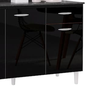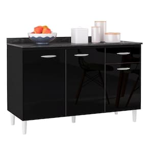 O Balcão Cozinha Pia 120cm com Tampo Classic P11 Preto/Marmore, da Mpozenato, é uma peça que combina funcionalidade e estilo, ideal para quem deseja maximizar o espaço e ter uma Cozinha Prática.