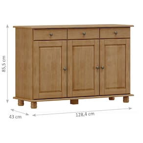 Características: Estrutura em Madeira Maciça de Pinus Pintura Acetinada Verniz PU e UV Corrediças Telescópicas Puxadores Metálicos em Ouro Envelhecido Pés Torneados em Madeira Maciça As Gavetas Suportam um Peso Máximo Distribuído de 5Kg As Prateleiras Suportam um Peso Máximo Distribuído de 10kg