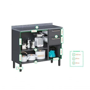 Prateleiras bem-distribuídas para caber todos os utensílios e mantimentos.