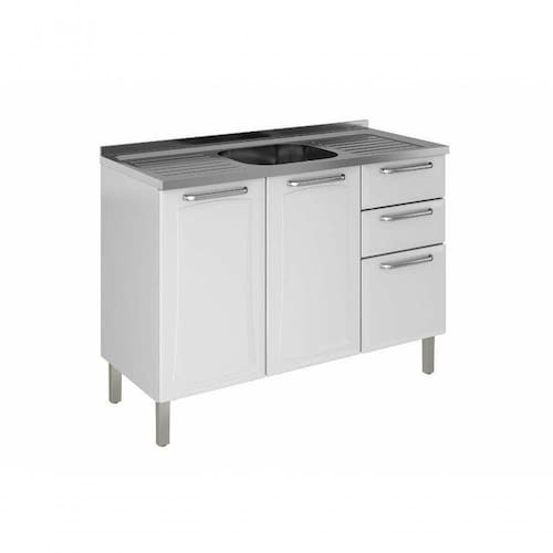 Balcão Cozinhas Itatiaia Tarsila 3 Portas E 2 Gavetas C/ Entrada Para Pia - Branco