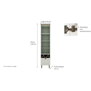 O Balcão Cristaleira 50 cm Para Cozinha da linha Iluminata da Genialflex com Porta de Vidro Provençal 100% MDF possui design contemporâneo inspirado no estilo americano. Possui fita de borda em PVC, conferindo alta durabilidade e proteção contra umidade ao móvel. As portas possuem vidro mini boreal e são feitas em MDF com acabamento BP e dobradiças com amortecimento possibilitando o fechamento “soft closing”. O produto possui 3 prateleiras conferindo versatilidade e praticidade no dia a dia! Suporta Granito: Não Acabamento da Prateleira: Pintura UV Escala de Brilho da Prateleira: Fosco Material do Puxador da Gaveta: ABS Acabamento da Porta: BP Melamínico Escala de Brilho da Porta: Fosco Material do Puxador da Porta: ABS Produto Montado: Sim Acabamento: Pintura UV Acabamento dos Pés: Pintura Acompanha Tampo: Não Altura dos Pés: 17 cm Altura Máxima dos Pés: 17.0000 Ambiente Principal: Cozinha Balcão Acompanha Pia: Não codigo_ean: 7909903179017 Complexidade da Montagem: Média: pode ser montado por mais de uma pessoa e/ou necessite de maior conhecimento para montagem Cor: Verde Mint Cor do Pés: Champagne Cor do Produto: Verde Mint Cor Flex: Não Cor Interna: Verde Mint Escala de Brilho: Fosco Informações Complementares: Balcão Cristaleira 50 cm para Cozinha com porta de vidro provençal 100% MDF Genialflex Itens Inclusos: 1 Balcão, Kit Ferragens e Manual de Montagem Linha ou Coleção: Iluminata - Genialflex Manual de Montagem e Instalação: https://product-hub-prd.madeiramadeira.com.br/810021/documents/2c339328-0d0e-49a5-b96d-67f745bd880610900201515.pdf Material da Dobradiça/Corrediça da Porta: Alumínio Material da Porta: MDF Material da Prateleira: MDF Material dos Pés: ABS modular: Sim Montagem Flex: Não Necessita Montagem: Sim O Balcão Acompanha Pia: Não Origem do Produto: Nacional Pés Reguláveis: Sim Peso: 60,2 kg Peso Máximo por Prateleira: 5 kg Possui Pés: 04 Possui recorte para Cooktop: Não Recomendações de Uso, Manutenção e Limpeza: Limpar com pano umedecido Sapatas Niveladoras: Não Sistema de Montagem: Parafusos e Cavilhas Suporta Até (kg): 35 kg Tipo de Dobradiça/Corrediça da Porta: Soft close Tipo de Porta: Misto (Bater e Basculante) Tipo de Puxador da Porta: Externo Ean: 7909903179017