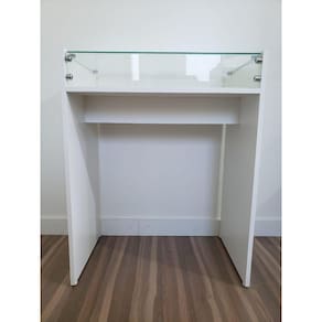 Exposição de produtos em lojas de diversos segmentos. Ideal como mesa para manicure, mesa aparador em salas, recepções e cafés. Perfeito para escritórios, servindo como mesa de trabalho ou para notebooks.