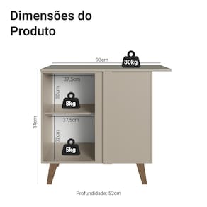 Produzido com materiais de qualidade, o balcão conta com dobradiças metálicas nas portas e puxadores em perfil de alumínio, discretos e resistentes. O acabamento de alta resistência mantém a beleza do móvel por muito mais tempo.