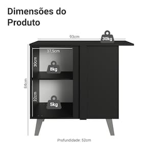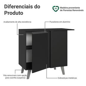 Produzido com materiais de qualidade, o balcão conta com dobradiças metálicas nas portas. O acabamento de alta resistência mantém a beleza do móvel por muito mais tempo.