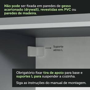 Obs.: - O produto não acompanha pés, deve ser instalado de forma suspensa - Imagens meramente ilustrativas, a decoração não acompanha o produto - Este módulo se encaixa perfeitamente nos módulos inferiores com 52 cm de profundidade da linha Nice. A sua profundidade conta já com a compensação por ser de canto. - A Madesa não disponibiliza serviço de montagem - O produto segue com manual e todas as ferragens necessárias para a instalação