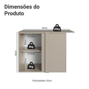 - Este módulo se encaixa perfeitamente nos módulos inferiores com 52 cm de profundidade da linha Nice. A sua profundidade conta já com a compensação por ser de canto.