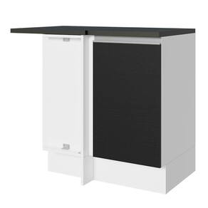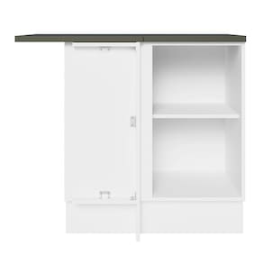 - Um (1) Balcão de Canto com uma (1) porta, uma (1) prateleira interna e dois (2) tampos em pintura Nero Marquina.