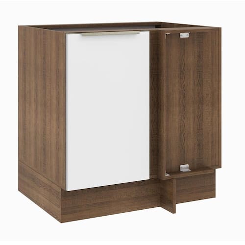 Este balcão se encaixa perfeitamente nos módulos inferiores com 60 cm de profundidade e pode ser combinado com outros módulos e todas as cozinhas da linha Lux da Madesa. A sua profundidade conta já com a compensação por ser de canto.